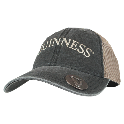 This grey baseball cap features contrast cream color detailing with the Guinness name embroidered on the front.