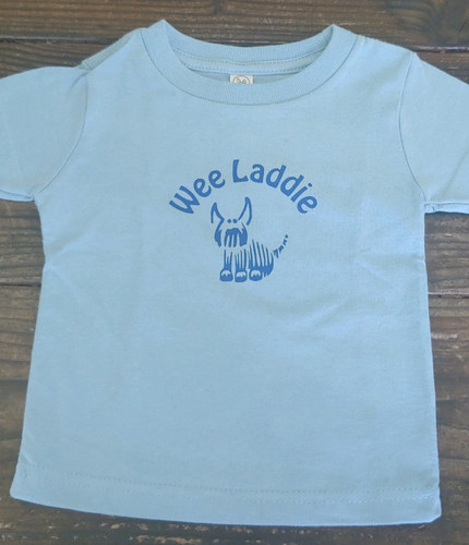 Description A fun Wee Laddie Kids Tee Shirt for all the Wee Laddies in your life. Nice light blue color. Pre-shrunk cotton.